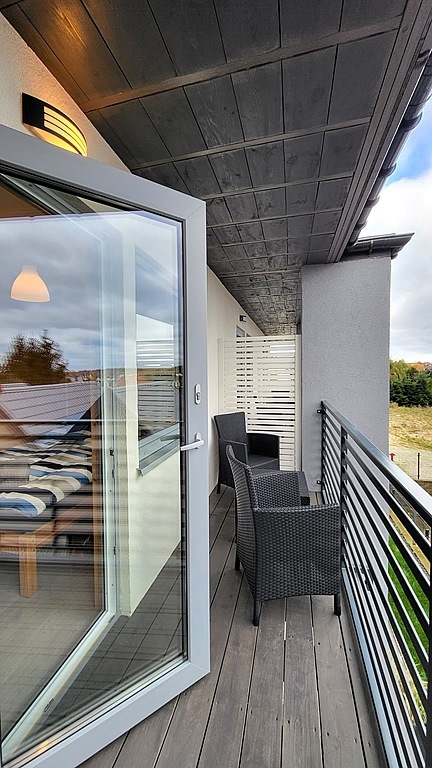 - Piętro - 2 dwuosobowe sypialnie, w tym jedna z wyjściem na duży balkon.