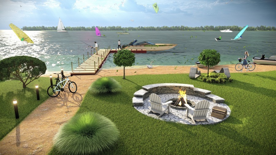 Działki znajdują się niedaleko miejskiej plaży z pomostem wykonanym z drewna, zakończonym domkiem na wodzie będącym równocześnie punktem widokowym oraz szkoły Wind & Kitesurfingu.