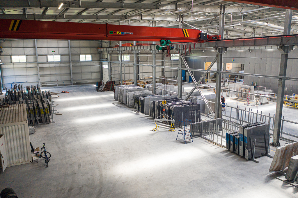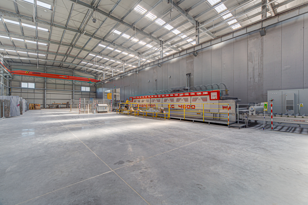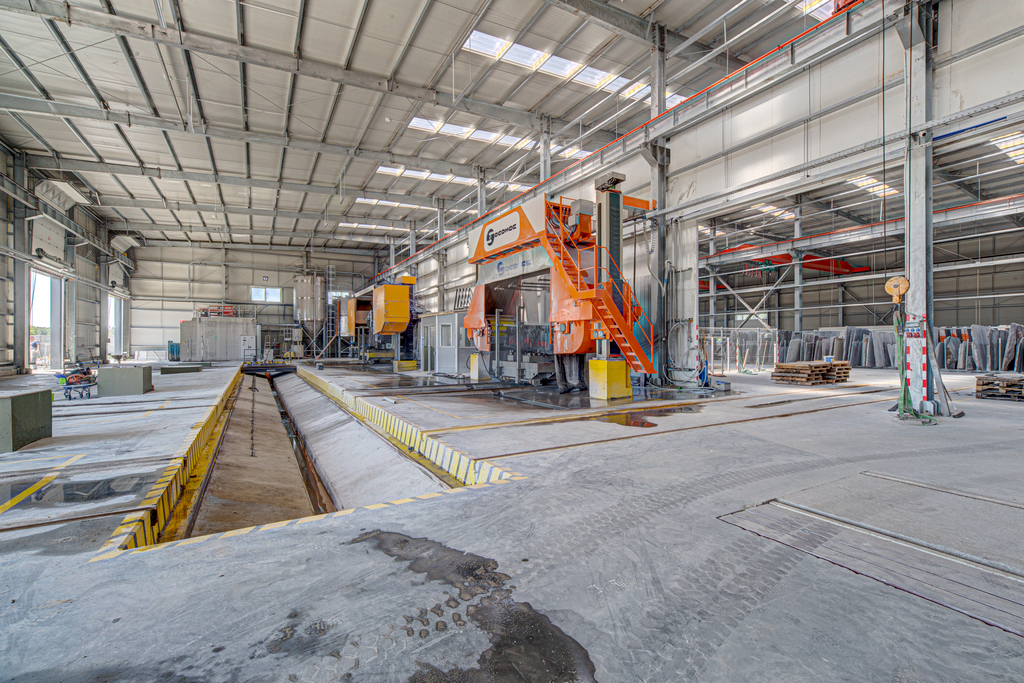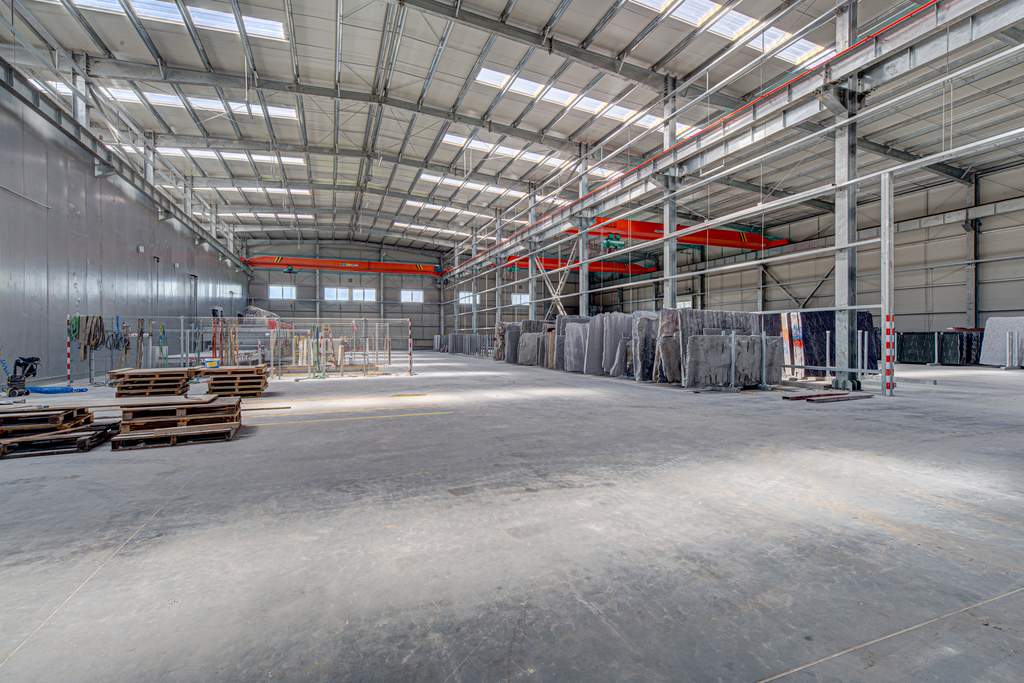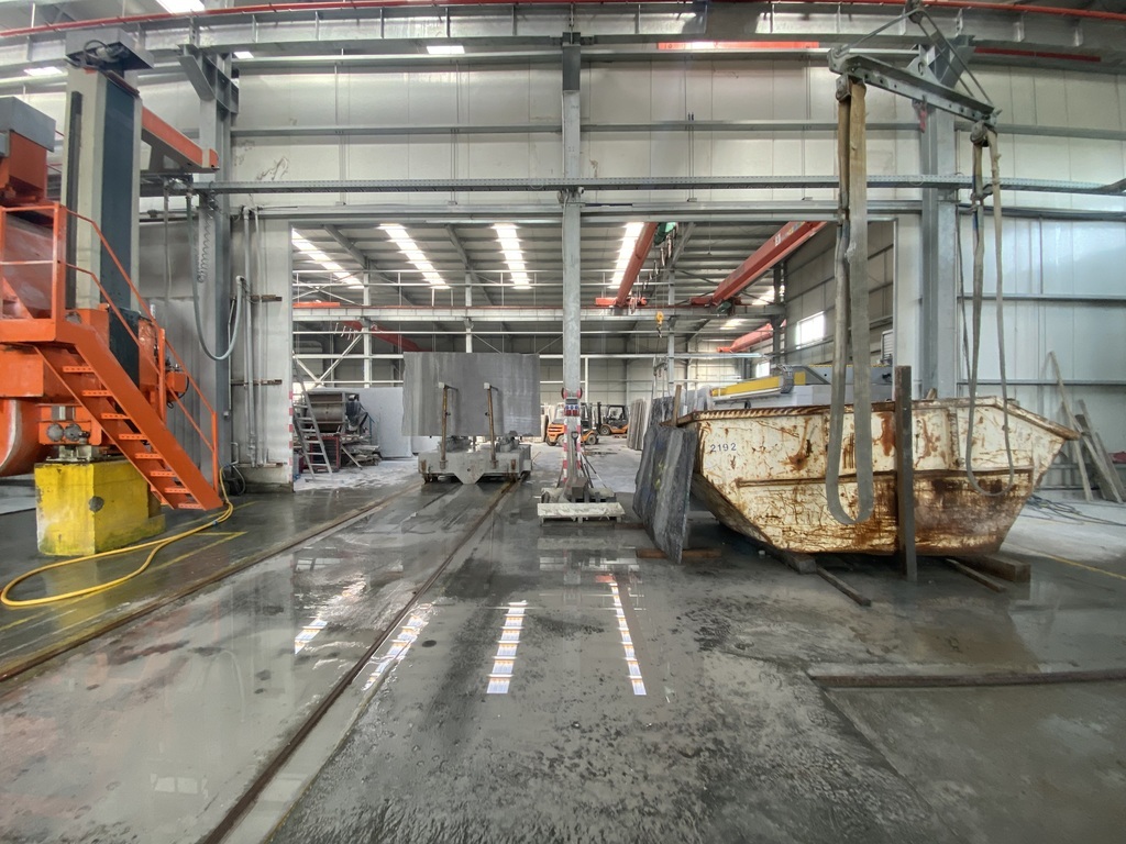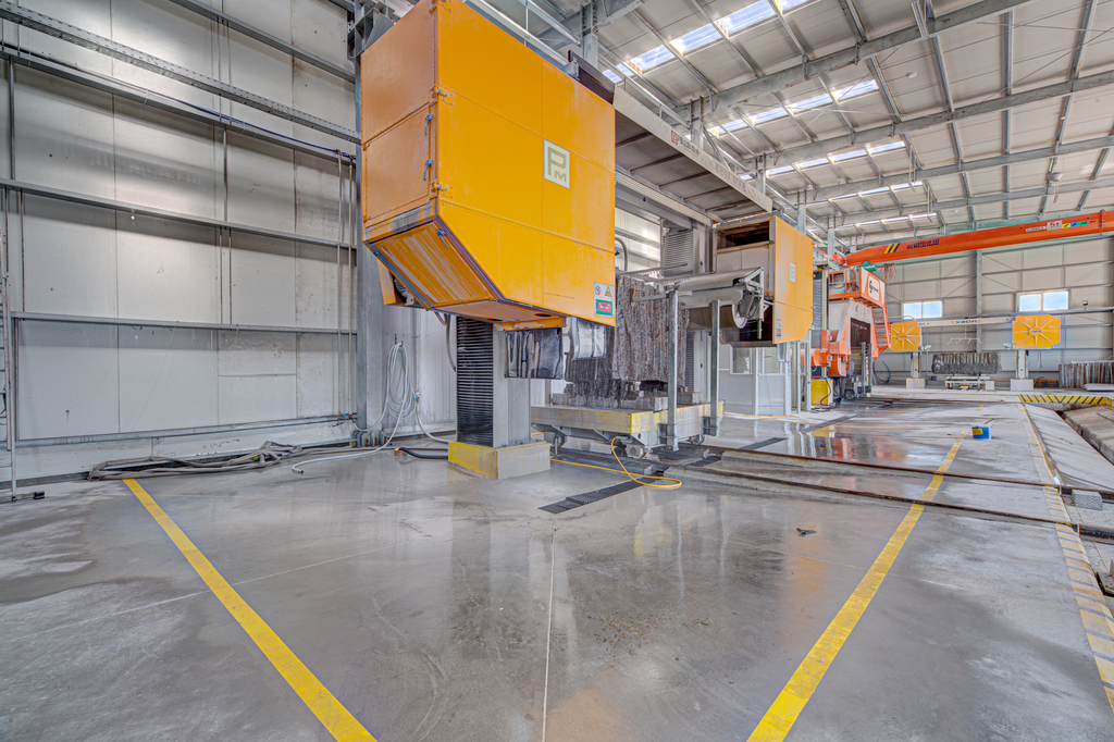 Obiekt znajduje się w bardzo dobrym stanie technicznym i podwyższonym standardzie. Hala wyposażona w wysokiej klasy urządzenia specjalistyczne: suwnice wewnętrzne o nośności 5 i 10 ton, urządzenia tnące typu Pellegrini, maszynę polerującą Breton, wózek rozprowadzający bloki kamienne do urządzeń tnących, urządzenie do czyszczenia wody technologicznej i odzysku pyłu kamiennego oraz wózki do transportu płyt.