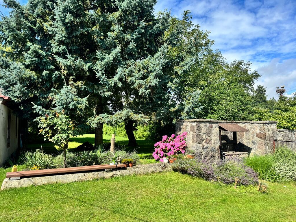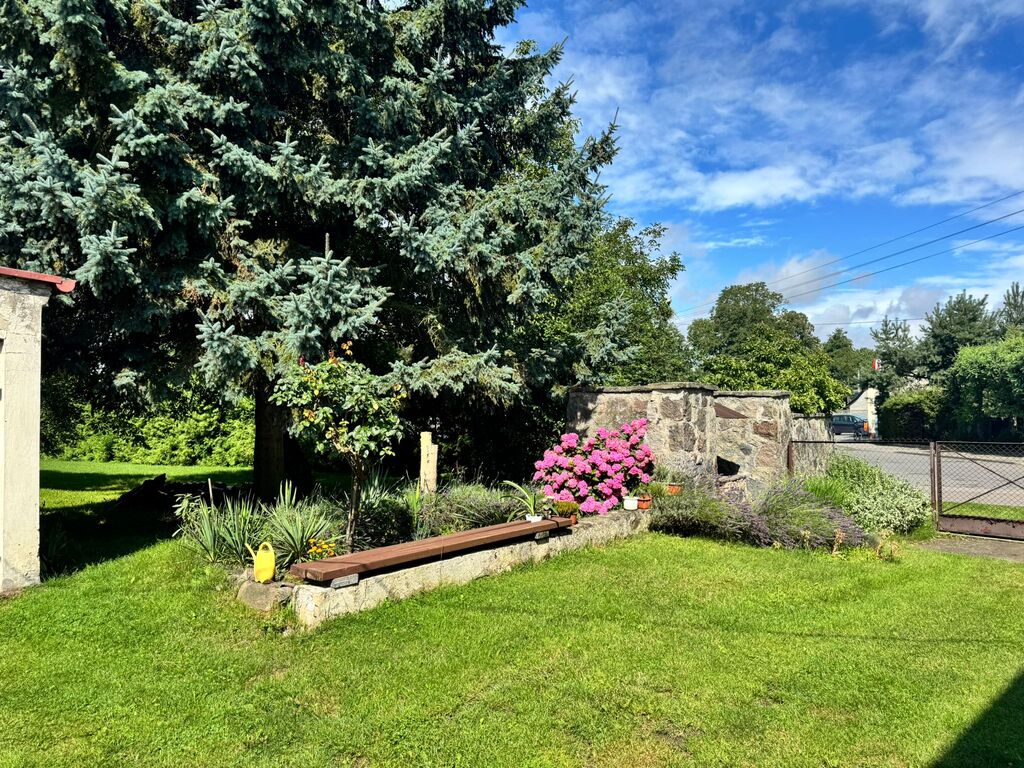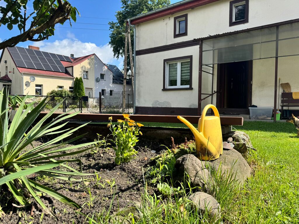 Pęzino miejscowość położona tylko 10 min od Stargardu, 7 km od Marianowa, 40 min od Szczecina. Dom wolnostojący, piękna duża działka, całość tworzyła gospodarstwo rolne. Niezmiernie rzadko można spotkać taką nieruchomość, gdzie można odpoczywać w otoczeniu przyrody, słuchać ptaków i szumu rzeczki a jednocześnie wyjść " za próg" i mieć sklep, przystanek, pocztę szkołę itd. Dom pierwotnie jednorodzinny na potrzeby mieszkańców został przerobiony tak , aby służył dwóm rodzinom. I tak: są dwa niezależne wejścia. Jedna część po remoncie, druga nie. Część wyremontowana to : przedpokój, salon, jadalnia i otwarta kuchnia. Na tym poziomie jest jeszcze łazienka. Schodami idziemy na poddasze użytkowe gdzie jest pokój, sypialnia, garderoba i przedpokój z zabudową z szaf typu Komandor. W salonie jest kominek z rozprowadzonym płaszczem wodnym. Parter to powierzchnia ok 50 m2, poddasze podobnie. Drugą cześć domu tworzy " lustrzane odbicie" . Ta część nie została wyremontowana, co pozwala nowym właścicielom zrobić je wg własnych pomysłów. Na dachu jest blacha, elewacja dobrze utrzymana, okna PCV, tylko w części do remontu zostały dwa na poddaszu, które jeszcze nie zostały wymienione. Tutaj mamy ogrzewanie piecem na węgiel. Na posesji jest garaż jednostanowiskowy, oraz 2 budynki gospodarcze. Dużą zaletą jest jeden z budynków gospodarczych, jest on wolnostojący, składa się z kilku pomieszczeń i jest to doskonała rzecz, do prowadzenia np. działalności rzemieślniczej. Obok stoi szklarnia i jeszcze jeden budynek służący gospodarstwu. Liczne nasadzenia, drzewa ozdobne oddzielają mieszkańców od ulicy, drzewa owocowe pozwolą zapełnić spiżarnię, winorośla, maliny, jeżyny itd. Działka ma kształt nieregularny w jednej części zbliża się do rzeczki. Na chwilę obecną teren pomiędzy działką a rzeką należy do gminy. Można go wydzierżawić, co da możliwość skorzystania z tego sąsiedztwa. Obok jest średniowieczny zamek ( rozbudowany w XIX wieku) , na jego dziedzińcu organizowane są co roku imprezy " rycerskie". Otoczenie bardzo ładne, niskie koszty utrzymania. Można przywrócić pierwotny kształt pomieszczeń, czyli połączyć te dwie części wstawiając tylko drzwi.
