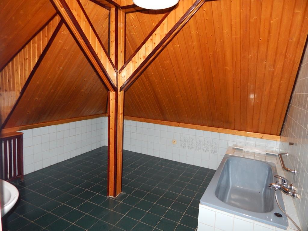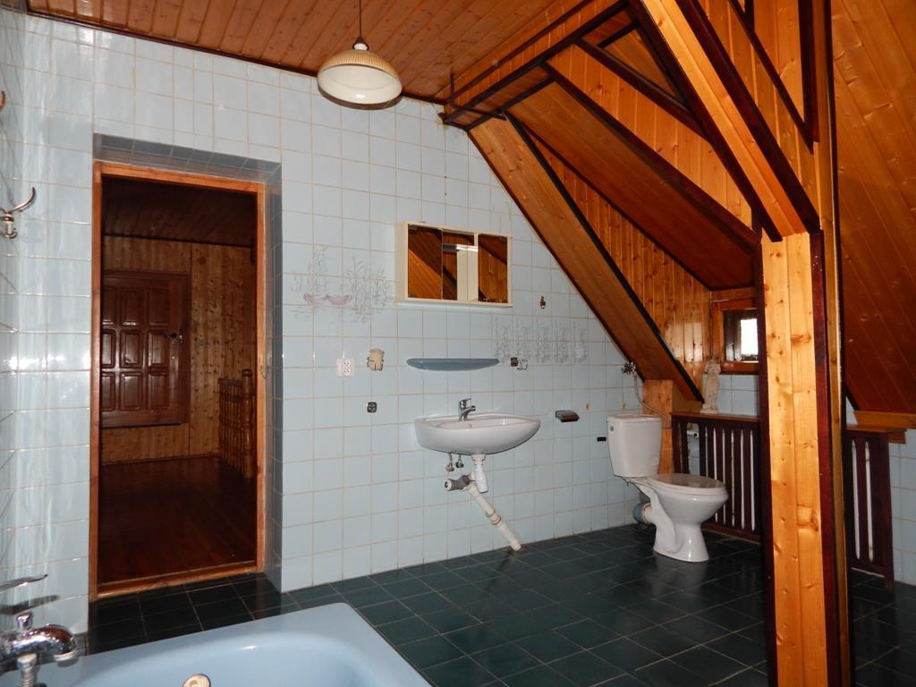 - na poddaszu - duża otwarta przestrzeń (35 m2), aktualnie podzielona na 2 osobne pokoje oraz łazienka (8 m2) z WC, wanną, umywalką, w glazurze i terakocie.