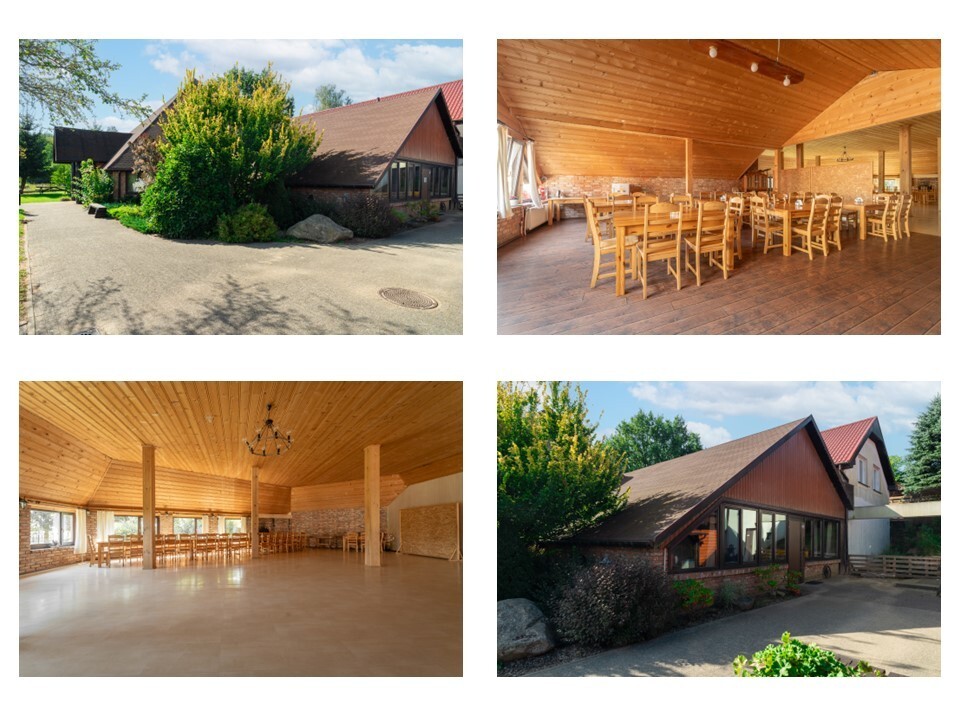 2. Budynek restauracyjny z miejscami siedzącymi dla ponad 100 osób i dużą wolną przestrzenią, z nowoczesnym wyposażeniem kuchennym takim jak piec parowy, kuchnia gazowa (gaz butlowy), chłodnie itp. (zakupione rok temu).
