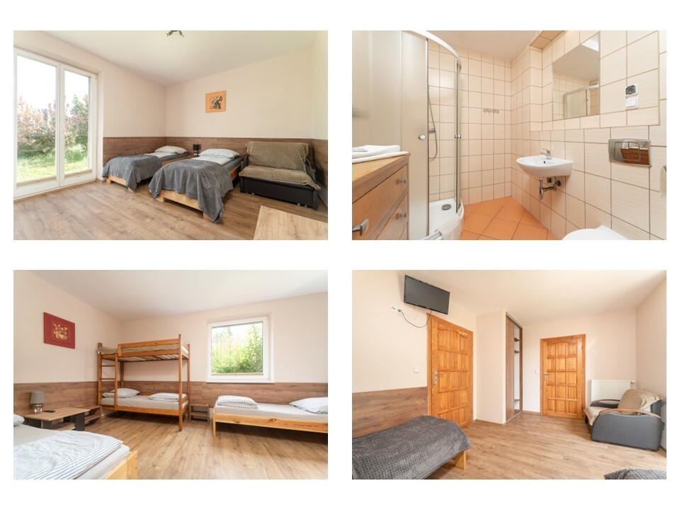 Na powierzchni 3,11ha mieszczą się: 1. Budynek noclegowy z wyposażonymi w pełni pokojami 3- i 4-osobowymi z łazienkami (8 na parterze i 10 na piętrze).