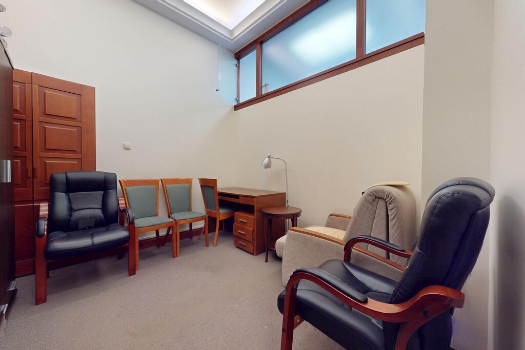 Pierwsza część o powierzchni 240 m² jest kompletnie wykończona w bardzo wysokim standardzie, z wnętrzami utrzymanymi w stylowym, eleganckim charakterze. W jej skład wchodzi przestronny i reprezentacyjny hol, który stanowi doskonałe pierwsze wrażenie dla klientów oraz wizytówkę lokalu. Dalej znajduje się pięć okazałych, reprezentacyjnych gabinetów, zaprojektowanych z dbałością o detale i komfort pracy. Wydzielono również część socjalną, obejmującą toaletę oraz w pełni wyposażoną kuchnię, co zapewnia wygodę codziennego użytkowania. Ta część lokalu jest gotowa do natychmiastowego wprowadzenia i doskonale nadaje się na kancelarię notarialną, adwokacką, biuro doradcze, gabinety lekarskie lub prestiżową siedzibę firmy.