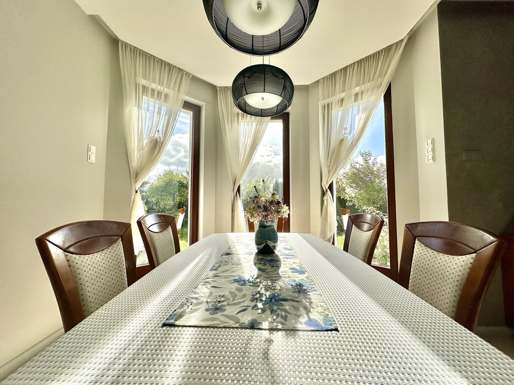 Dom gotowy do wprowadzenia, bardzo zadbany, wykończony z dbałością o detale. Drewniane elementy wnętrza tworzą przytulny klimat, a nowoczesne rozwiązania techniczne zapewniają wygodę i oszczędność energii. Idealny dla rodziny, która ceni komfort, ekologię i wysoką jakość wykonania.