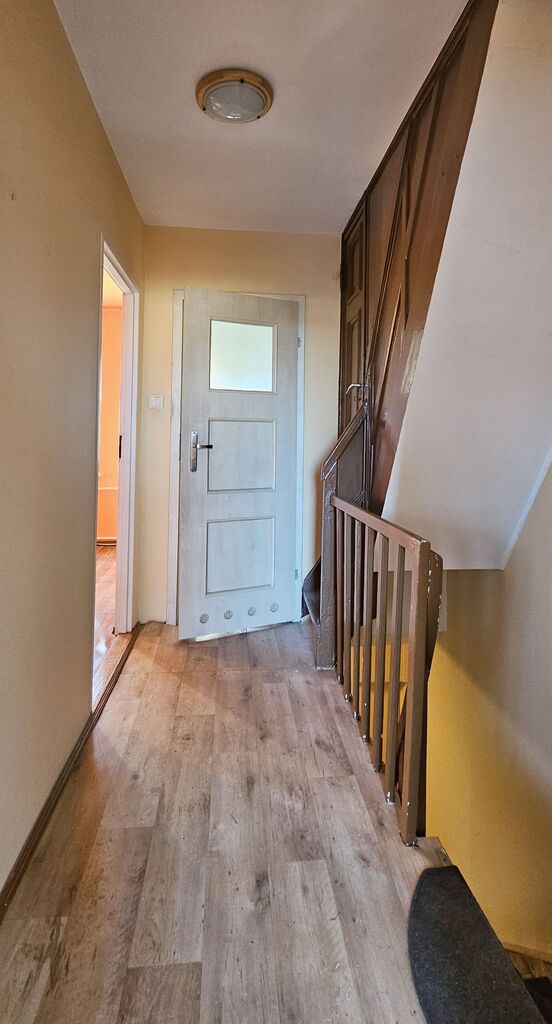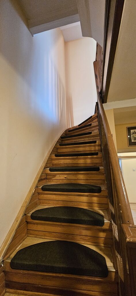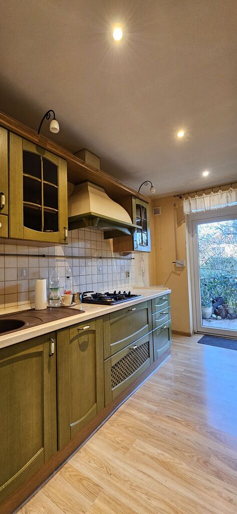 Przedmiotem oferty jest środkowy szeregowiec, położony na ul. Traugutta, tuż przed skrzyżowaniem z Mickiewicza. Dom wybudowany z cegły, nieocieplony. Na dachu dachówka betonowa. Dużym atutem jest możliwość zaparkowania auta przed budynkiem oraz garaż (27m2) na 1 samochód z kanałem i nową bramą wjazdową i garażową od drugiej strony działki. Wjazd drogą ppoż. Na parterze (p.u. ok. 51,84m2) znajduje się salon z jadalnią (ok.28m2), kuchnia z meblami i AGD starszego typu (7m2) z oknami na ogród, - w kuchni roleta zewnętrzna ręczna, w salonie roleta zewnętrzna elektryczna; zaraz przy wejściu małe wc (ok. 0,84m2), przedpokój (ok.4m2) oraz pokój (12m2) z oknami na ul. Traugutta. Na I piętrze p.u. ok.35m2, znajdują się 2 sypialnie (13m2 i 16m2), w tym jedna z oknami na ul. Traugutta a druga na ogród z wyjściem na duży taras od strony płd-zach. (20m2), korytarz (ok. 2,5m2) oraz łazienka z oknem (ok.3,74m2). Strych do własnej aranżacji (p.u. ok 22m2); istnieje możliwość zrobienia łazienki - podciągnięta instalacja wod-kan. Pod budynkiem podpiwniczenie (ok.51m2). Dom do remontu wg uznania. Ogrzewanie na gaz, ciepła woda z pieca gazowego lub elektrycznego. Roczny koszt zużycia gazu ok 5-6 tys. zł. Instalacja elektryczna w kuchni wymieniona w 2009 r., Instalacja wod-kan. w większości wymieniona w 2009 r., częściowo zostały stare rury kanalizacyjne. Instalacja gazowa wymieniona z z nowym piecem i jednym nowym grzejnikiem w salonie w 2017 r. Okna pcv, na strychu połaciowe drewniane nowego typu. Na podłogach parkiet drewniany, na nim panele. Stropy drewniane. Ogród zagospodarowany, wąski, z przejściem do garażu. Z ogrodu wejście do piwnicy. Doskonała lokalizacja dla rodzin z dziećmi, blisko komunikacja miejska, ryneczek Pogodno, przychodnia, poczta. Mimo centralnego położenia między dwiema ruchliwymi ulicami, w domu i na ogrodzie ledwo słyszalny szum uliczny. Zapraszam na prezentacje, klucze w biurze.