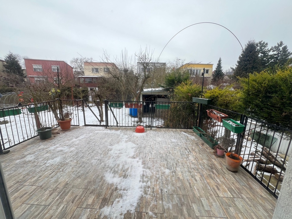 Parter: 2 pokoje (sypialnia i salon), kuchnia z wyjściem na balkon, łazienka, salon z wyjściem na taras ok. 20 m² i zejściem do ogrodu