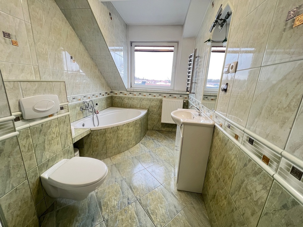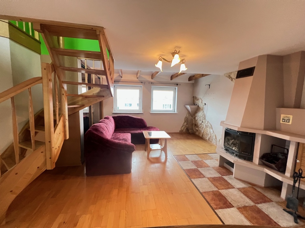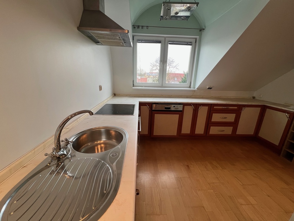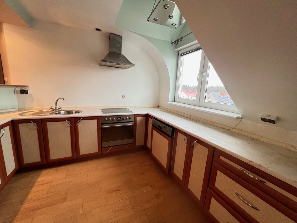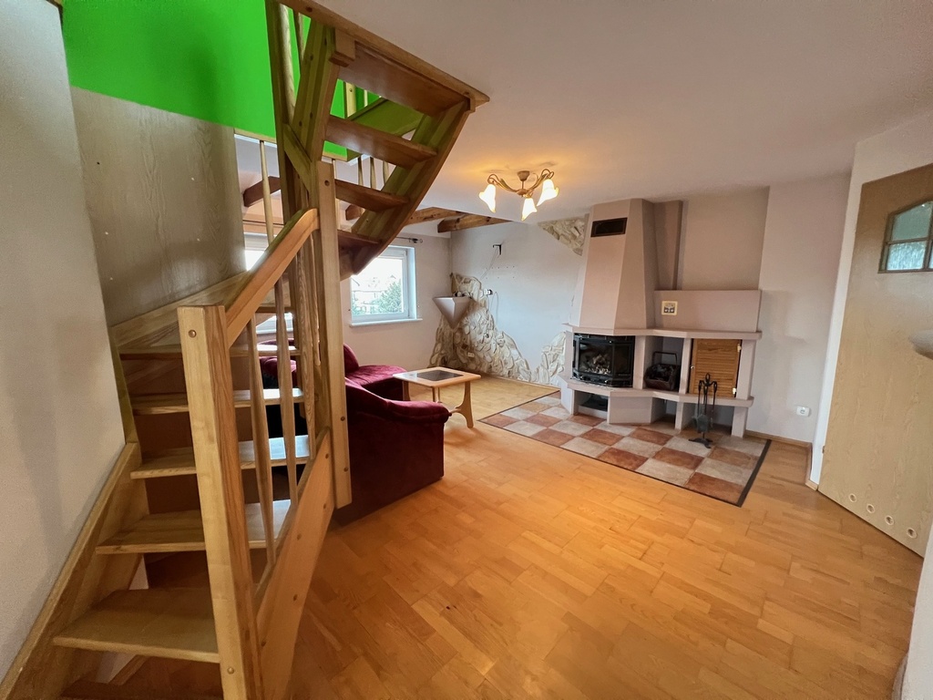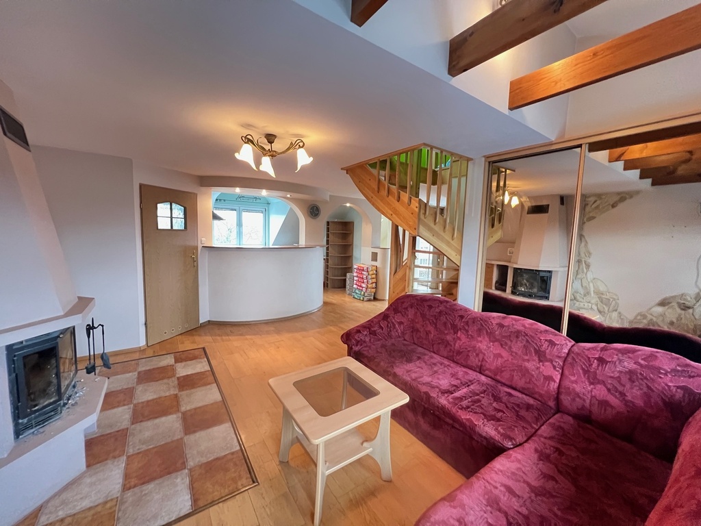 Poddasze użytkowe: 2 pokoje, kuchnia, łazienka, kominek z płaszczem wodnym, dodatkowy pokój na zaadaptowanym strychu