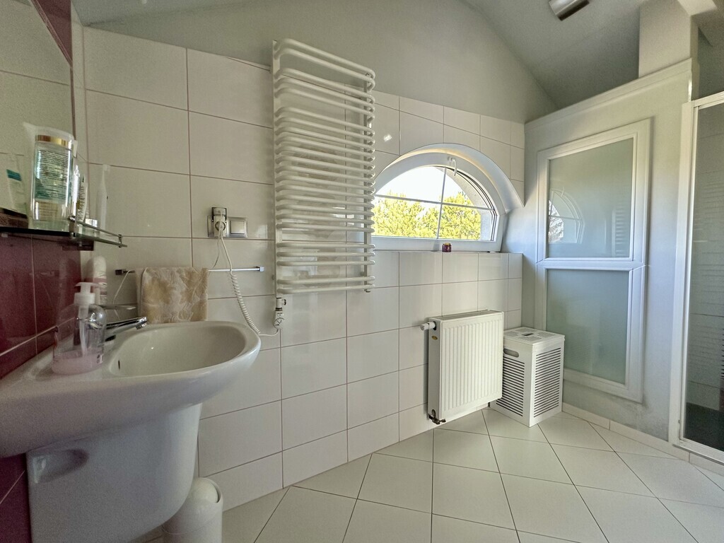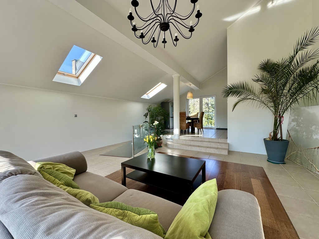 Dużym atutem domu jest fotowoltaika założona w 2021 roku, docieplenie budynku oraz dachu. Na poddaszu zamontowana została klimatyzacja, w oknach rolety zewnętrzne na pilota, a w domu centralny odkurzacz.